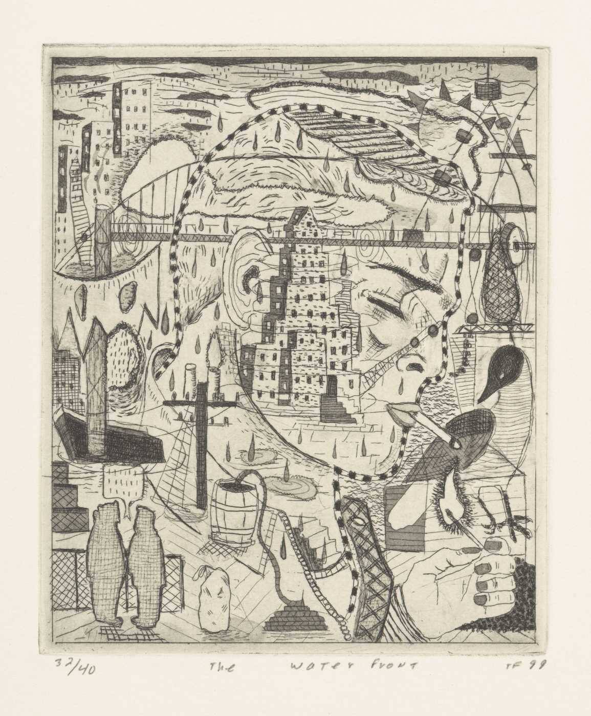 Inscribed32/40 lower left margin, The Water Front lower margin, center