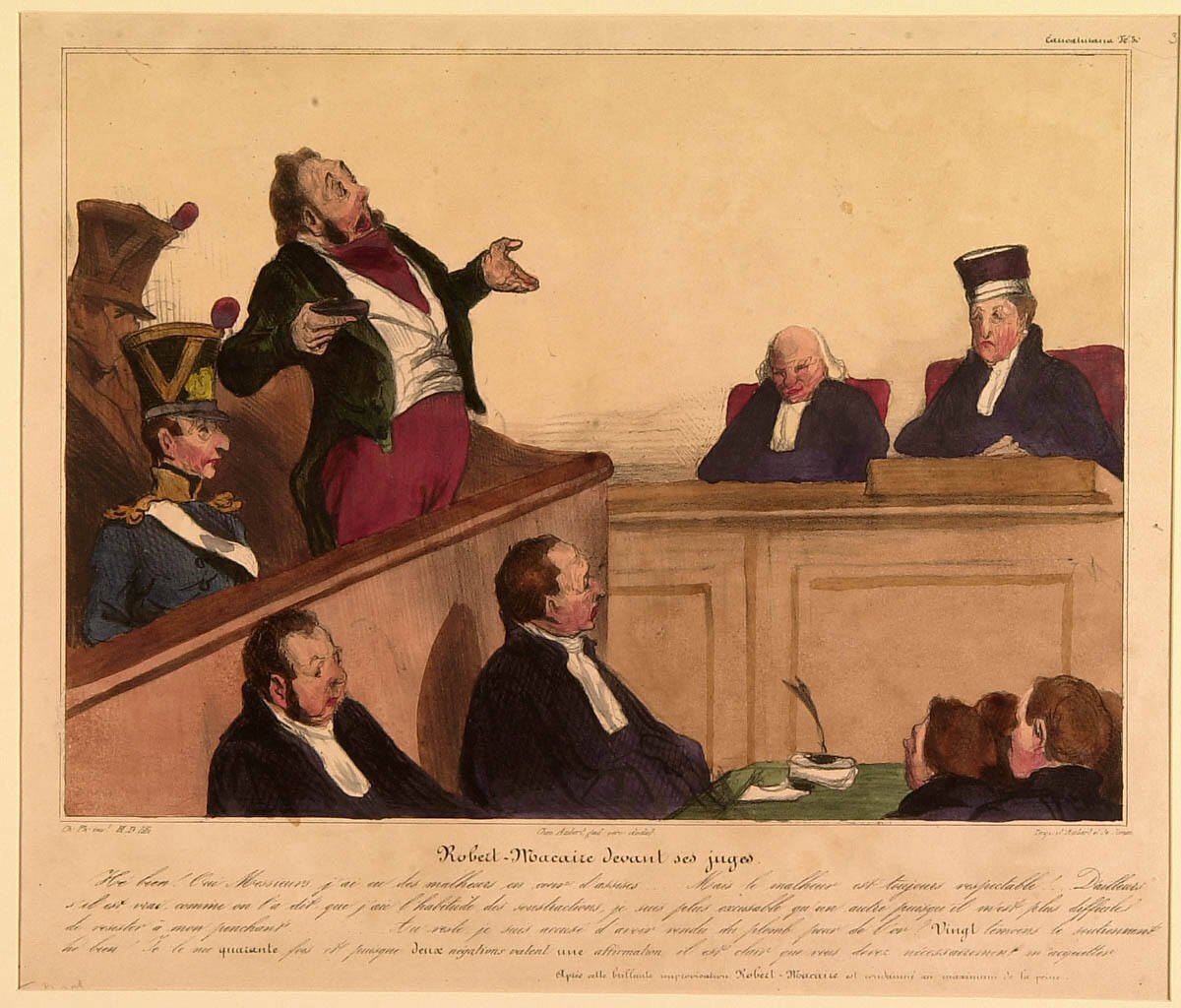 George L. McKenna, Prints, 1460-1995 (Kansas City, MO: Nelson-Atkins Museum of Art, 1996), 295-96, as Caricaturana (Les Cent Robert Macaire): Robert Macaire Before His Judges.