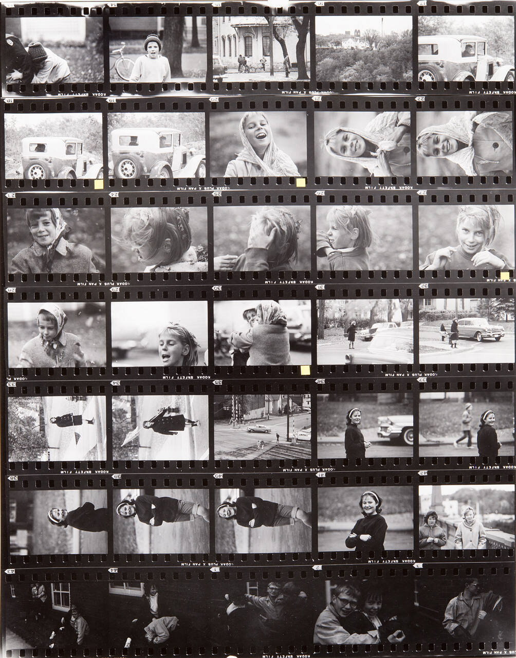 DescriptionContact sheet of Guggenheim work Roll #232-238; upper left frame is an image of a boy wearing a stocking cap and grabbing another boy from behind.ProvenanceHall Family Foundation, Kansas City, MO, 2013;