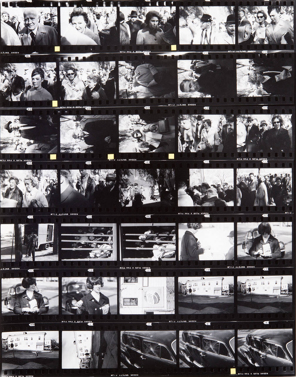 DescriptionContact sheet of Guggenheim work Roll #266-273; upper left frame is an image of a crowd - older man in front smiling and wearing tie and coat.ProvenanceHall Family Foundation, Kansas City, MO, 2013;