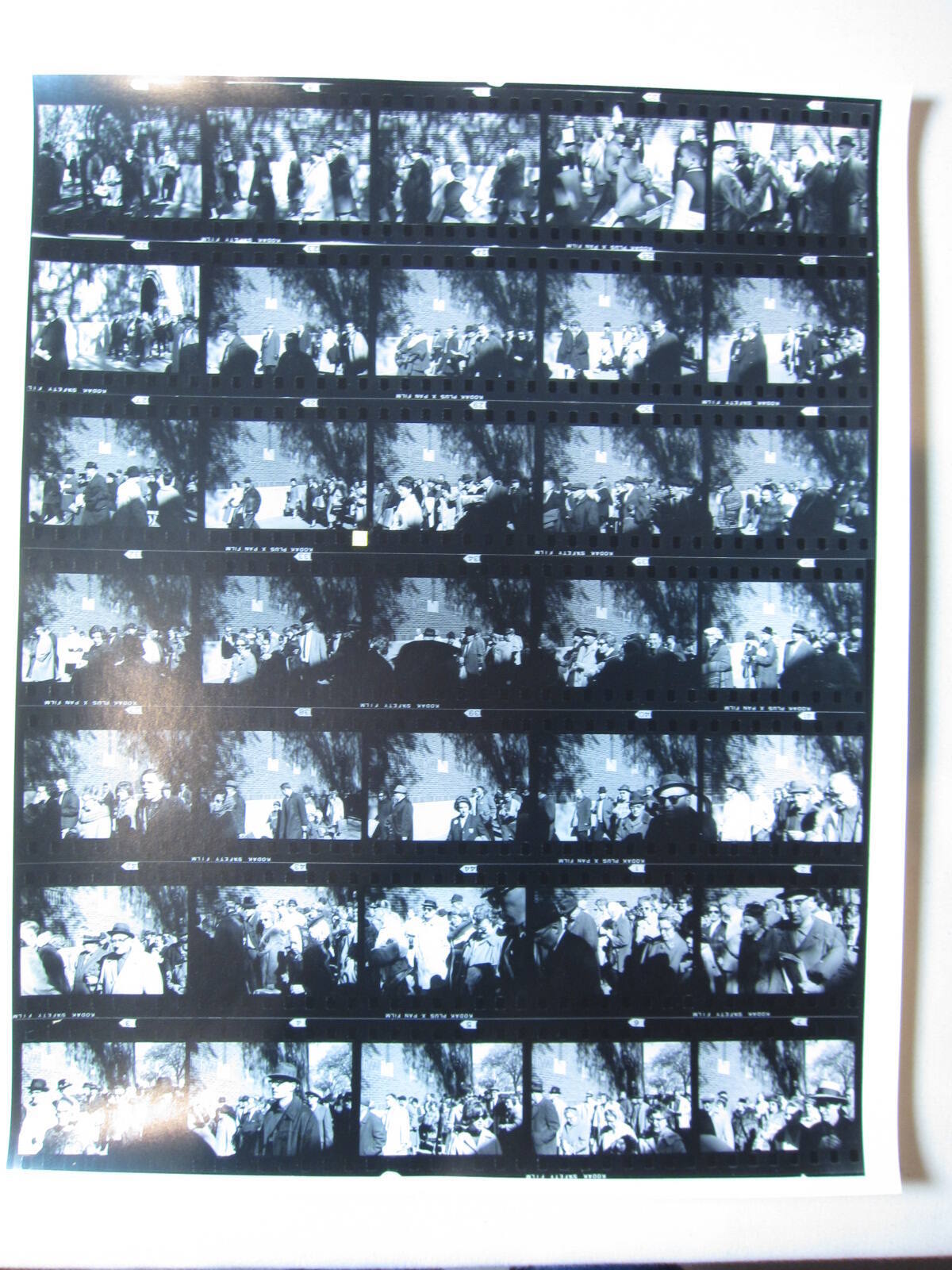 DescriptionContact sheet of Guggenheim work Roll #274-280; upper left frame is an image of a crowd waiting beside a brick building - couple in front.ProvenanceHall Family Foundation, Kansas City, MO, 2013;