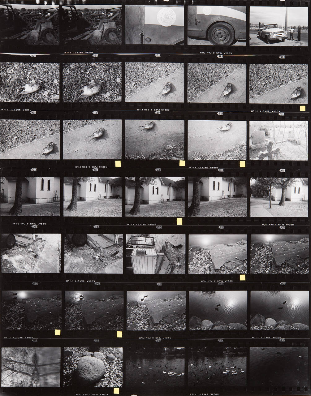 DescriptionContact sheet of Guggenheim work Roll #414-420; upper left frame is an image of rusty car frames and discarded tires.ProvenanceHall Family Foundation, Kansas City, MO, 2013;