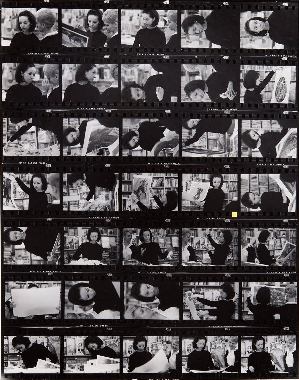 DescriptionContact sheet of Guggenheim work Roll #435-441; upper left frame is an image of two woman in a bookstore.ProvenanceHall Family Foundation, Kansas City, MO, 2013;