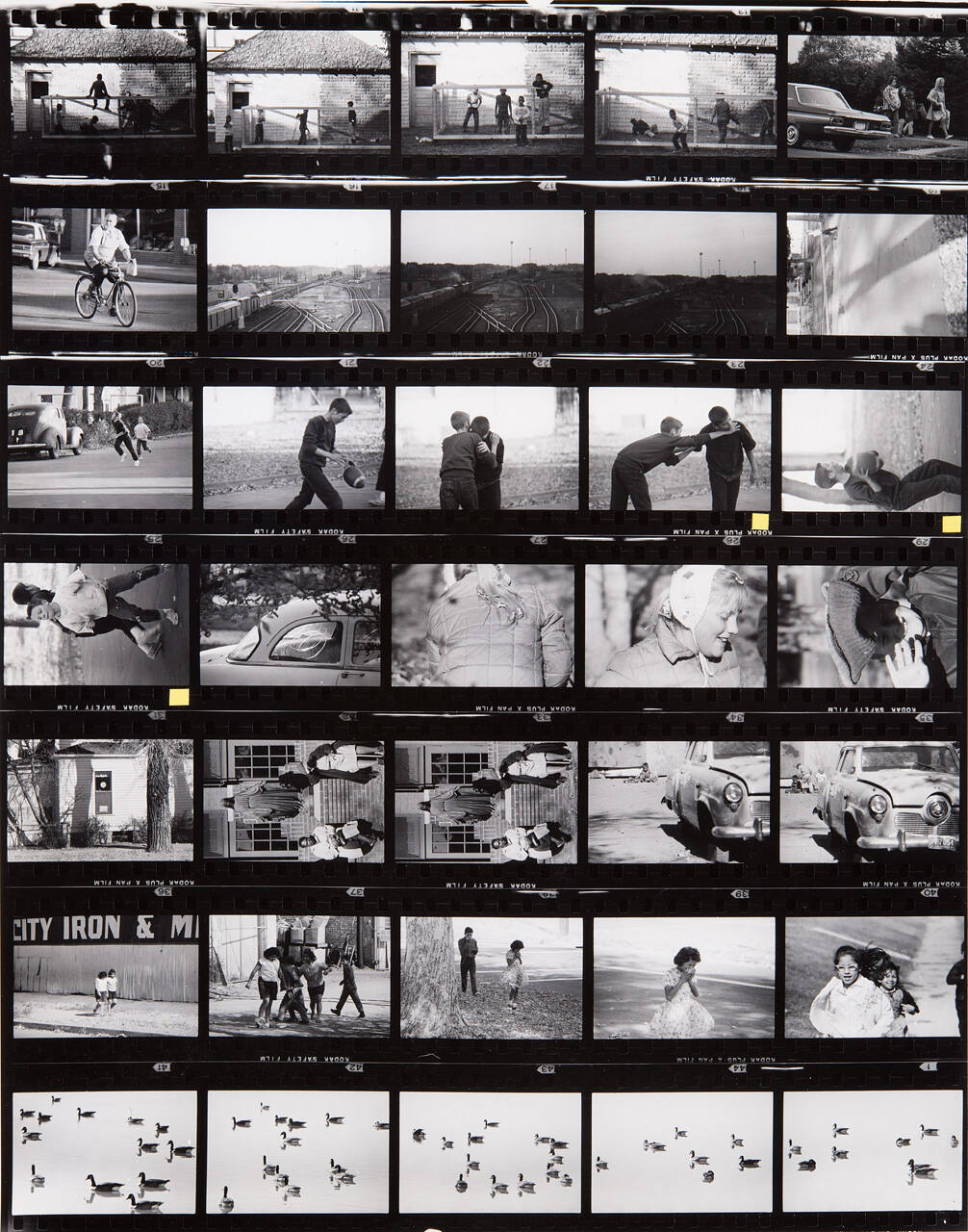 DescriptionContact sheet of Guggenheim work Roll #469-475; upper left frame is an image of young boys playing in a framed structure next to a house.ProvenanceHall Family Foundation, Kansas City, MO, 2013;