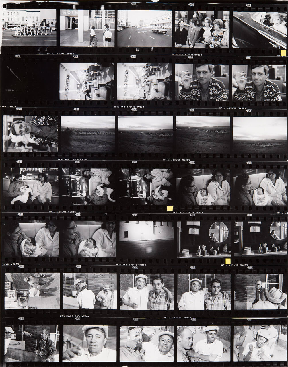 DescriptionContact sheet of Guggenheim work Roll #524-530; upper left frame is an image of young men carrying a parade float down the street.ProvenanceHall Family Foundation, Kansas City, MO, 2013;
