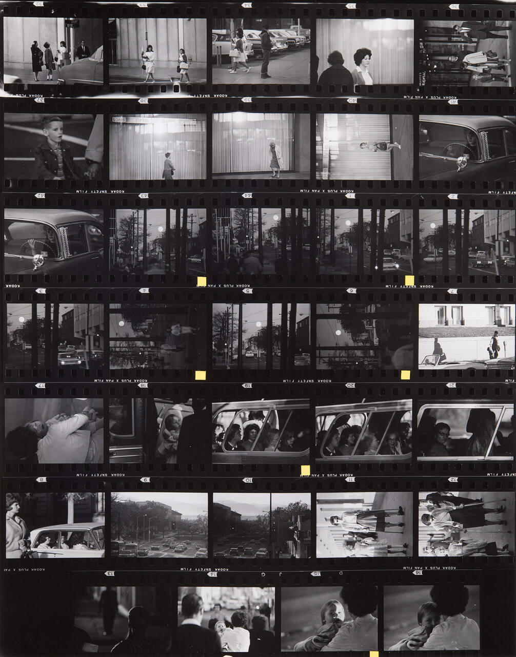 DescriptionContact sheet of Guggenheim work Roll #559-565; upper left frame is an image of three women and one man standing near a street corner with signs reading "COURT" and "15th ST".ProvenanceHall Family Foundation, Kansas City, MO, 2013;