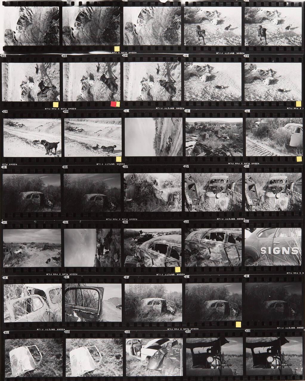 DescriptionContact sheet of Guggenheim work Roll #594-600; upper left frame is an image of an abandoned car partially buried in dirt and debris.ProvenanceHall Family Foundation, Kansas City, MO, 2013;