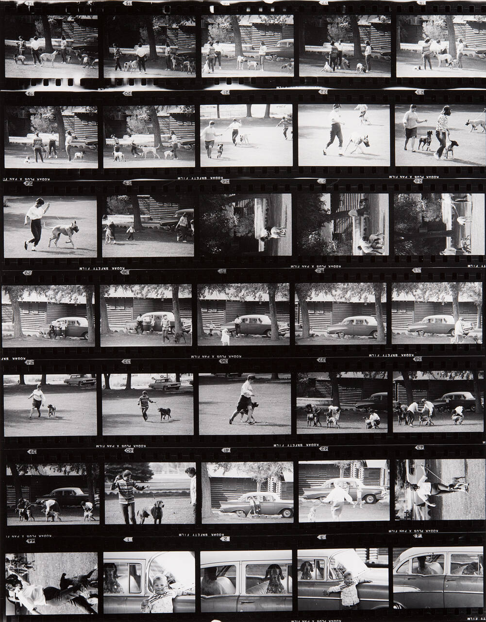 DescriptionContact sheet of Guggenheim work Roll #615-621; upper left frame is an image of three women standing in park with dogs on leashes.ProvenanceHall Family Foundation, Kansas City, MO, 2013;