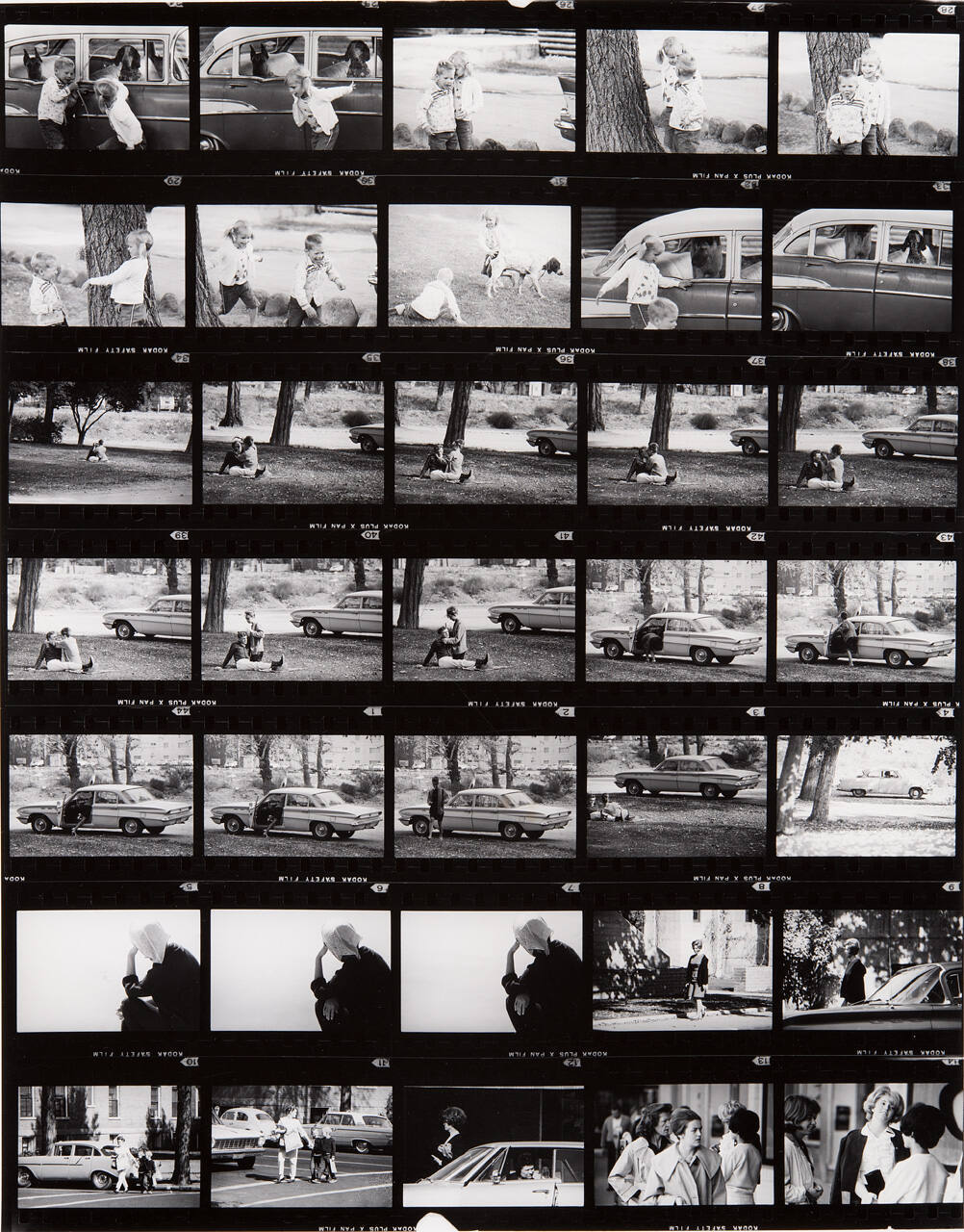 DescriptionContact sheet of Guggenheim work Roll #643-649; upper left frame is an image of two children playing near a car with two dogs inside.ProvenanceHall Family Foundation, Kansas City, MO, 2013;