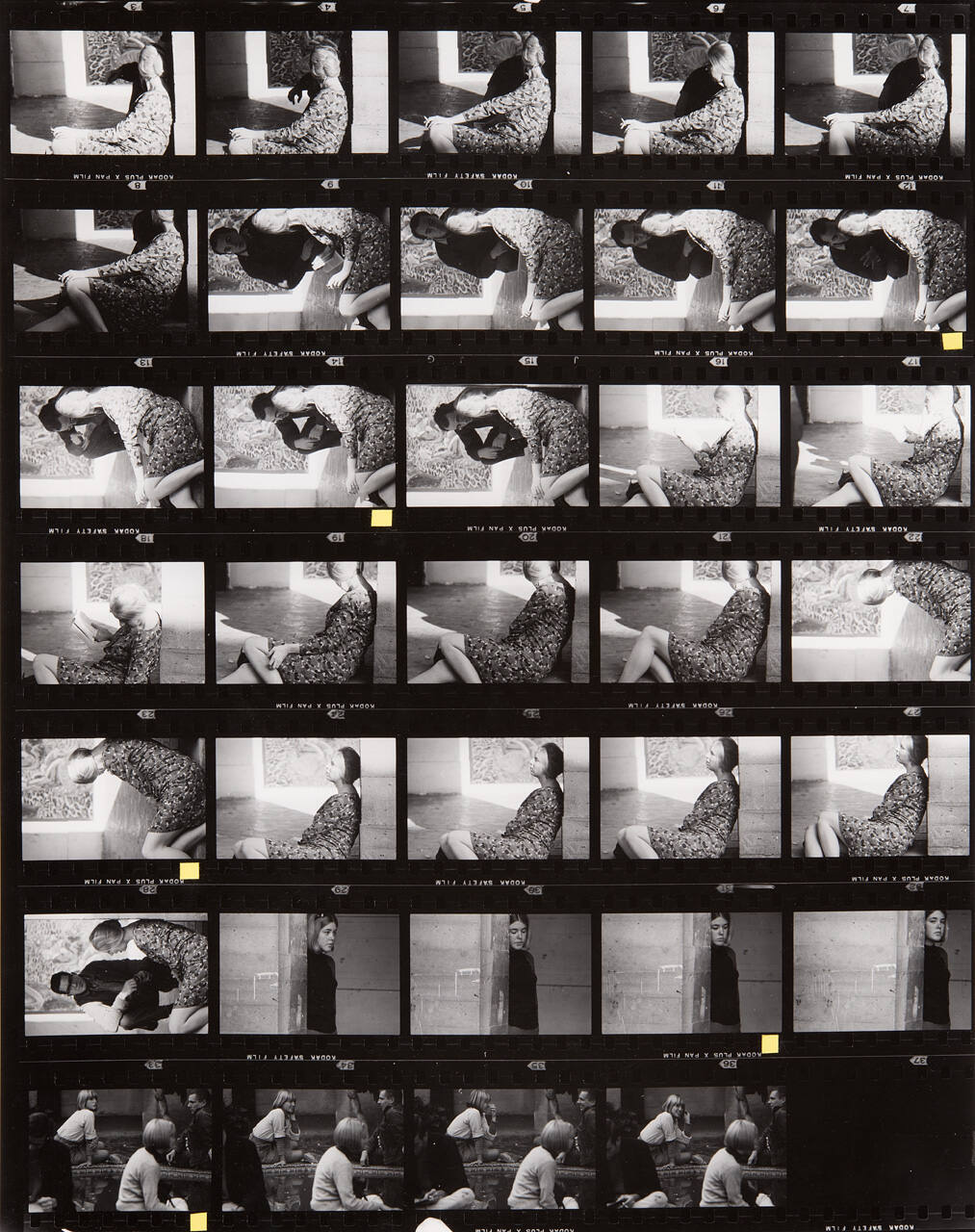 DescriptionContact sheet of Guggenheim work Roll #720-726; upper left frame is an image of a seated woman who is turned away from camera, wearing floral dress, and holding cigarette.ProvenanceHall Family Foundation, Kansas City, MO, 2013;