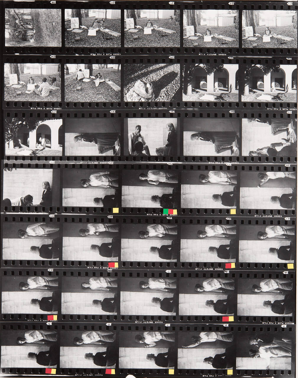 DescriptionContact sheet of Guggenheim work Roll #741-747; upper left frame is an image of a park-like setting with a man sitting in a tree with a painting propped up against the base.ProvenanceHall Family Foundation, Kansas City, MO, 2013;