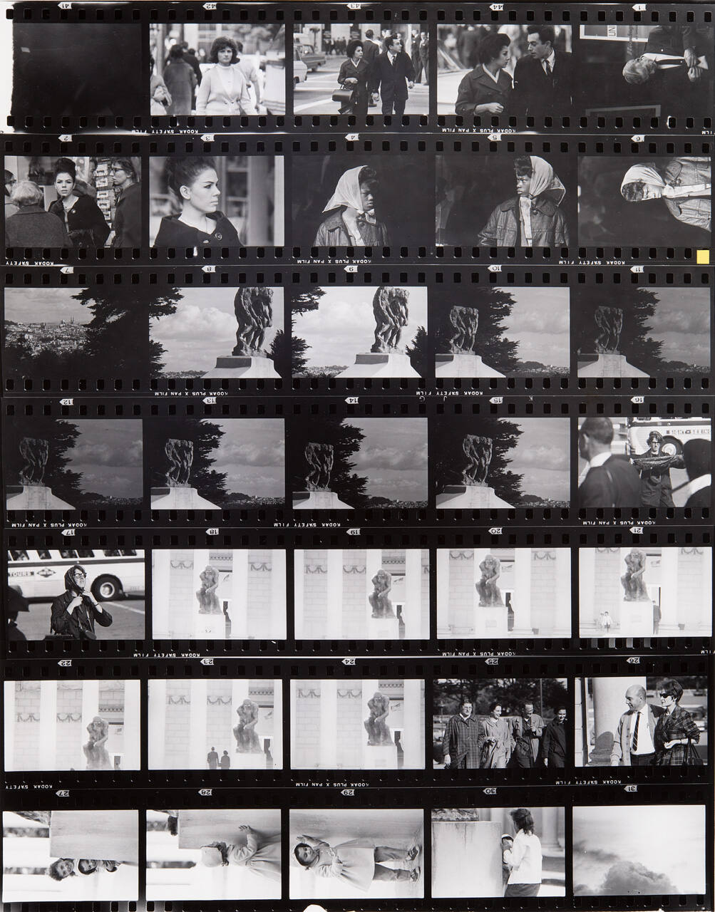 DescriptionContact sheet of Guggenheim work Roll #866-872; upper left frame is an unidentifiable/black exposure - no image.ProvenanceHall Family Foundation, Kansas City, MO, 2013;