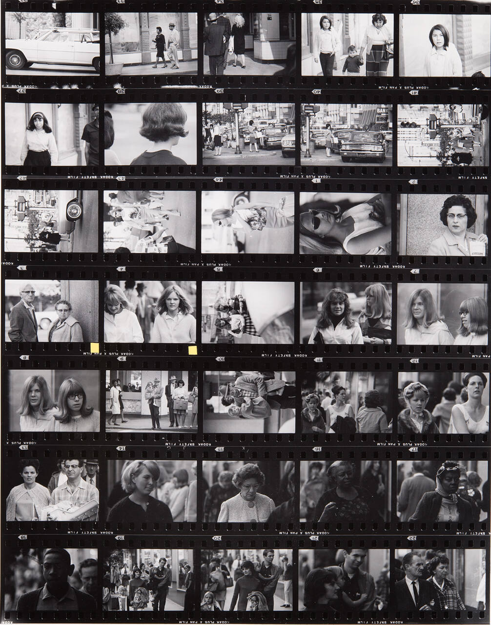 DescriptionContact sheet of Guggenheim work Roll #893-899; upper left frame is an image of a woman wearing sunglasses driving a convertible.ProvenanceHall Family Foundation, Kansas City, MO, 2013;