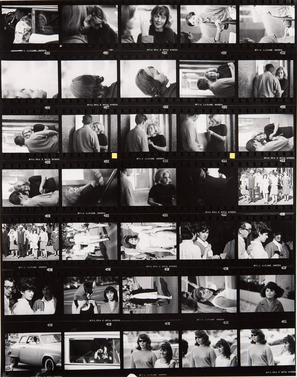 DescriptionContact sheet of Guggenheim work Roll #900-906; upper left frame is an image of a man getting out of car with a little girl in the back seat.ProvenanceHall Family Foundation, Kansas City, MO, 2013;