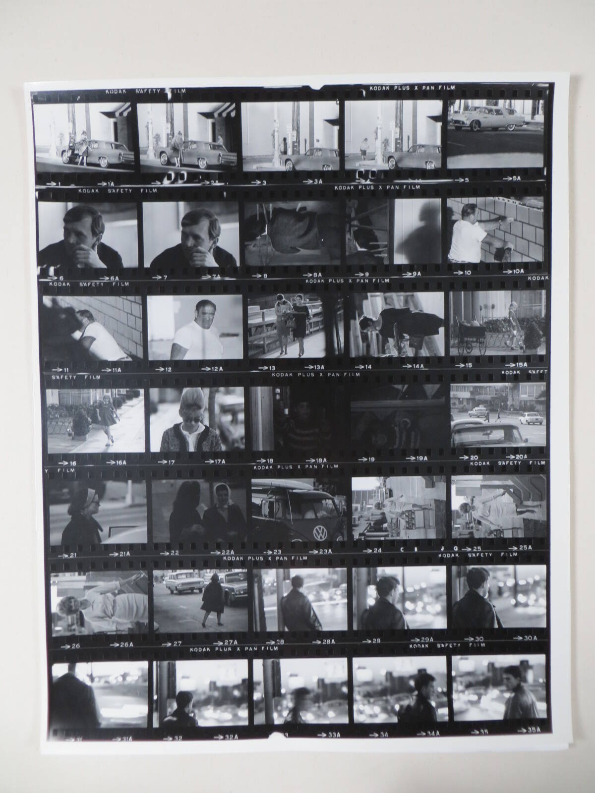 DescriptionContact sheet of Guggenheim work Roll #1464-1470; upper left frame is an image of a woman getting out of car and putting on fur coat.ProvenanceHall Family Foundation, Kansas City, MO, 2013;