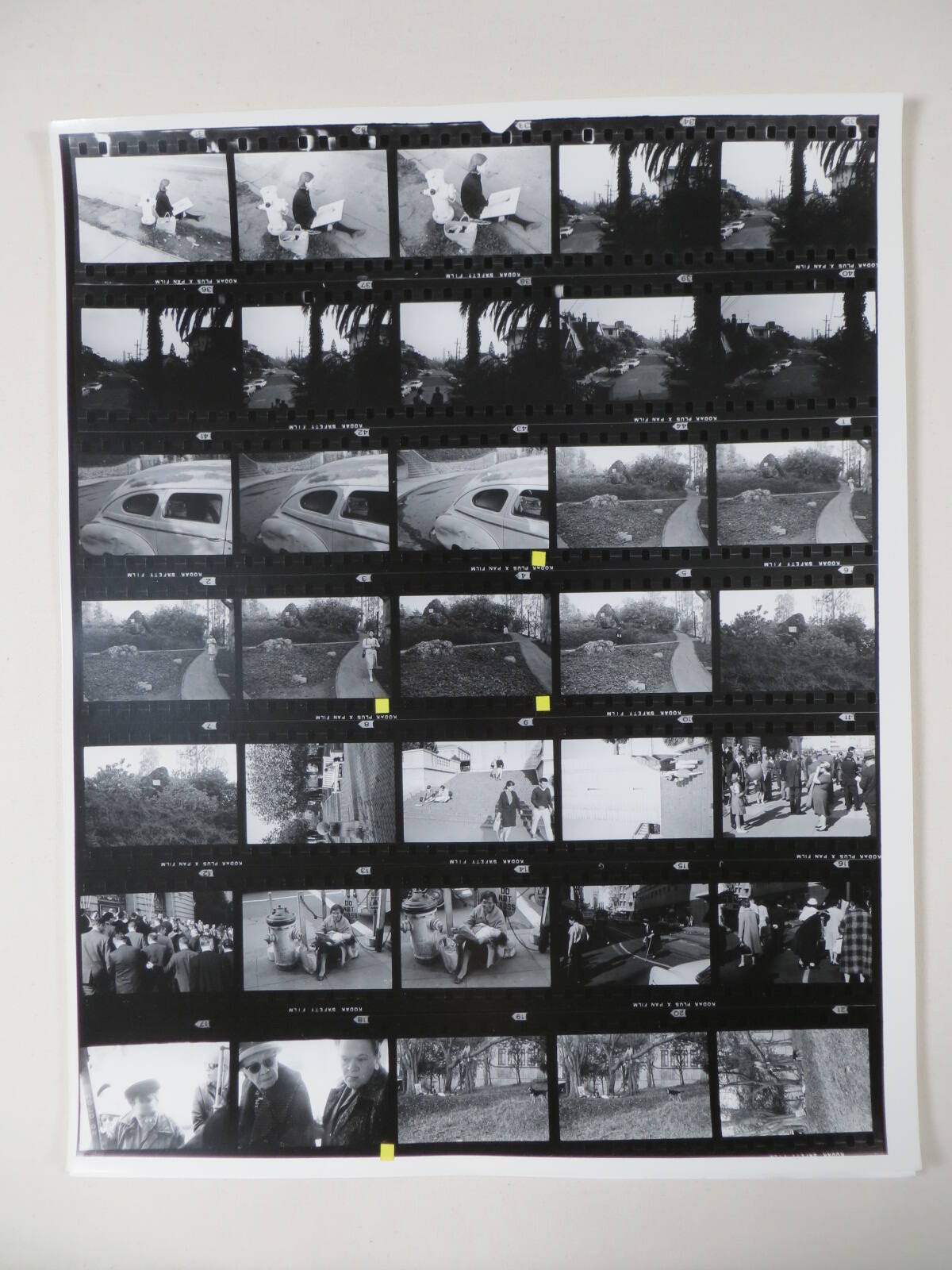 DescriptionContact sheet of Guggenheim work Roll #1471-1477; upper left frame is an image of woman seated next to fire hydrant sketching in a notepad.ProvenanceHoward Greenberg Gallery, New York, NY;