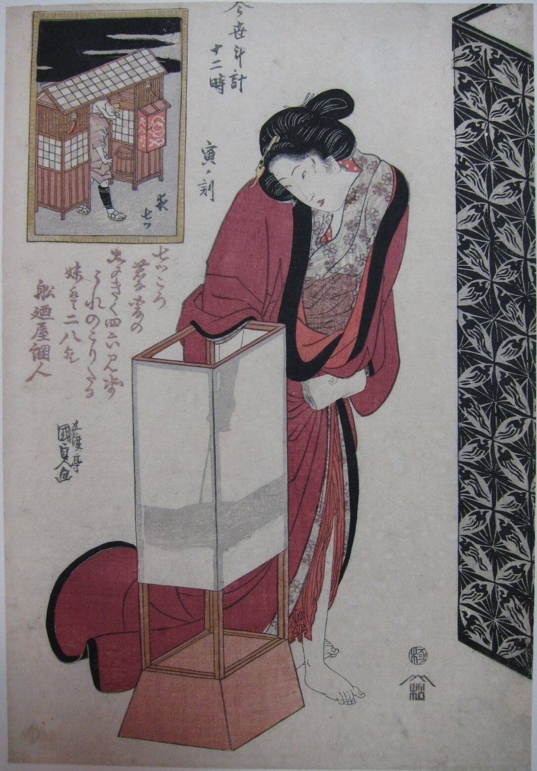 A Courtesan Lighting a Lamp at the Tiger Hour (12:00)