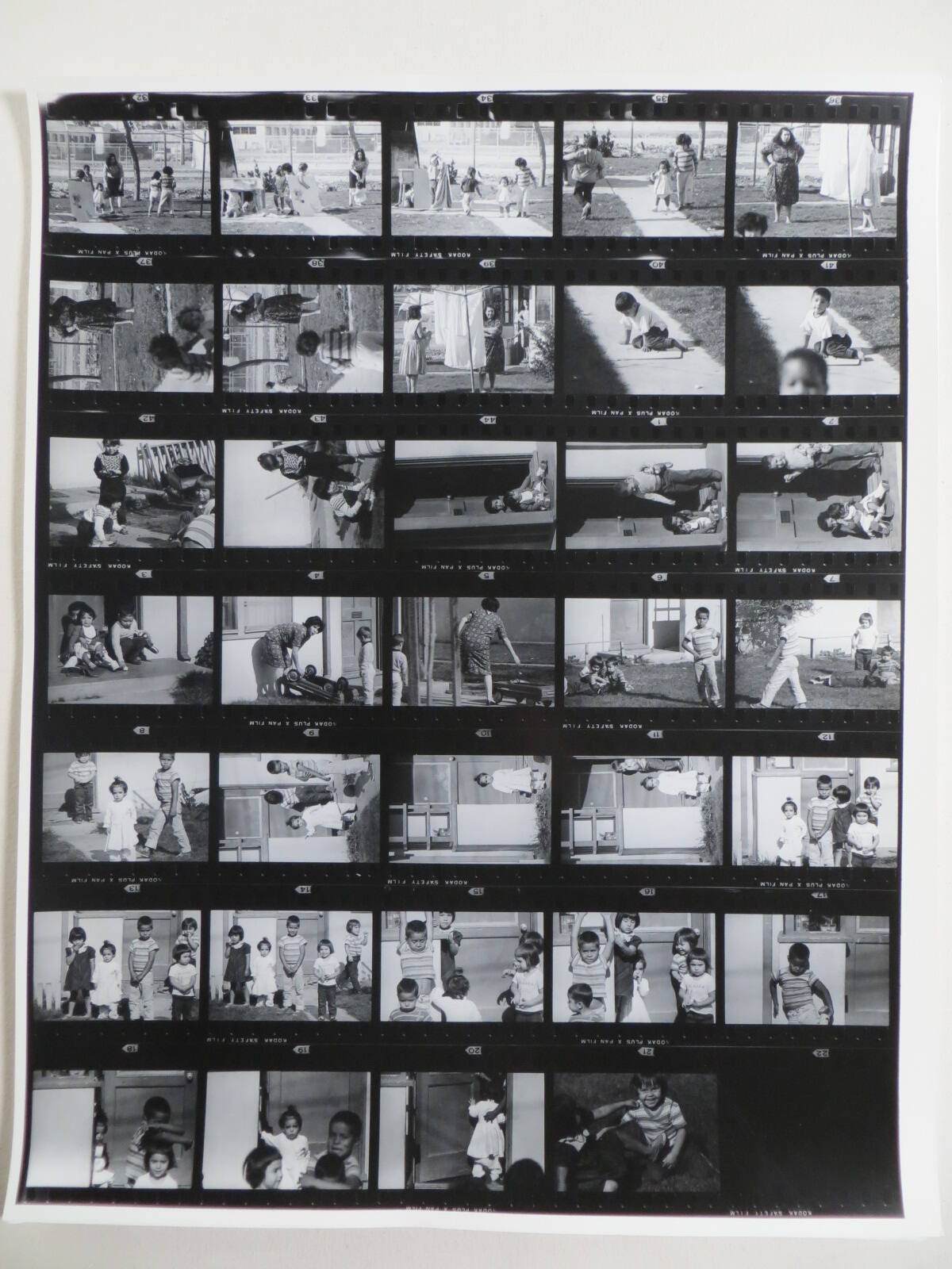 DescriptionContact sheet of Guggenheim work Roll #1746-1752; upper left frame is an image of a woman standing outside next to children playing.ProvenanceHall Family Foundation, Kansas City, MO, 2013;