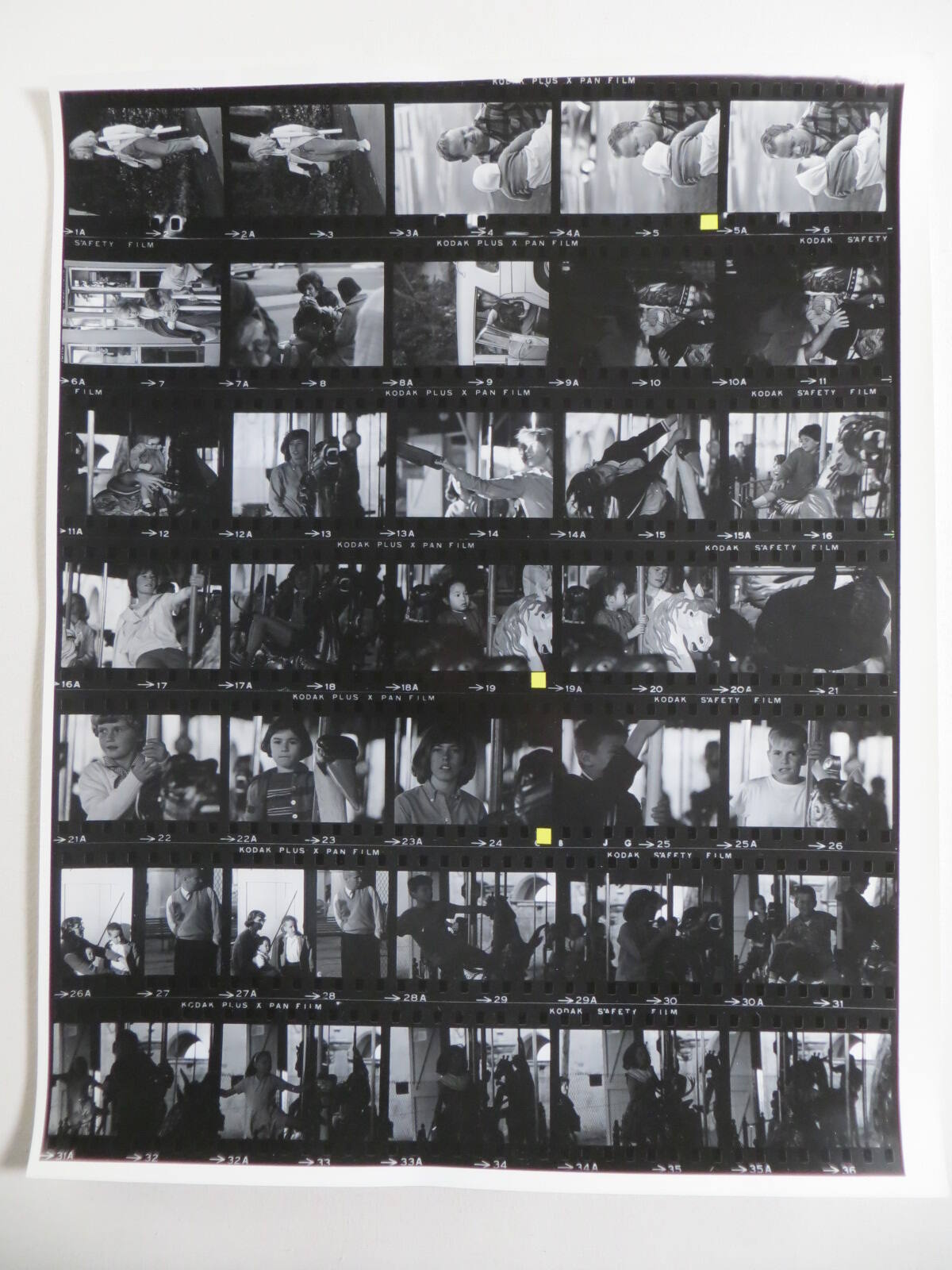 DescriptionContact sheet of Guggenheim work Roll #1809-1815; upper left frame is an image of a young girl walking outside holding a long tube.ProvenanceHoward Greenberg Gallery, New York, NY;
