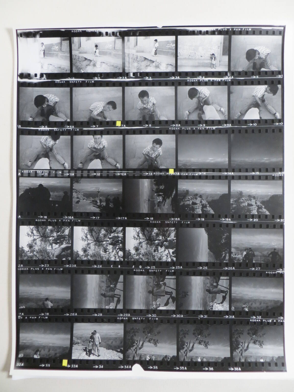 DescriptionContact sheet of Guggenheim work Roll #1893-1899; upper left frame is an image of boy holding a doll and standing on stone ledge next to a building.ProvenanceHall Family Foundation, Kansas City, MO, 2013;