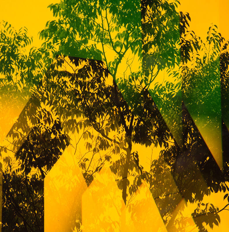 DescriptionComposite image of leafy trees and house like forms in yellow and green.Copyright© Estate of Yasuhiro Ishimoto