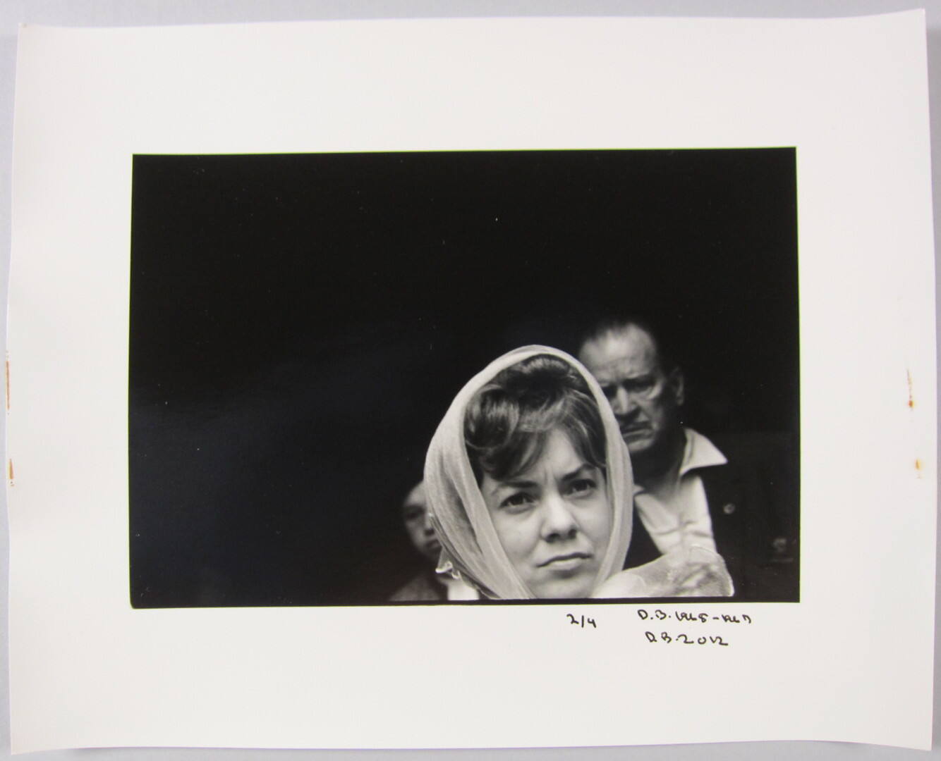 DescriptionCropped image of woman wearing headscarf with two others in background.Copyright© Donald Blumberg