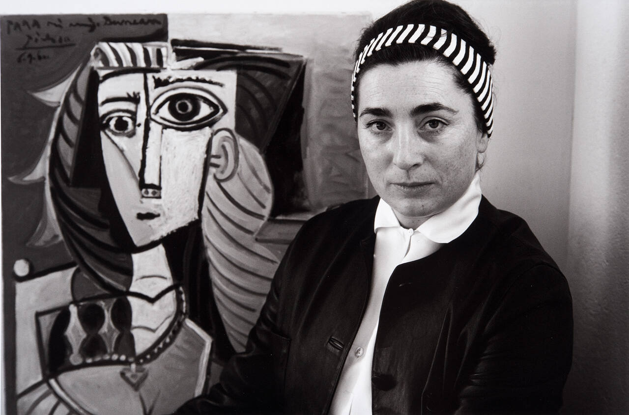Jacqueline Picasso with portrait of herself. Given to David Douglas Duncan by Pablo Picasso.