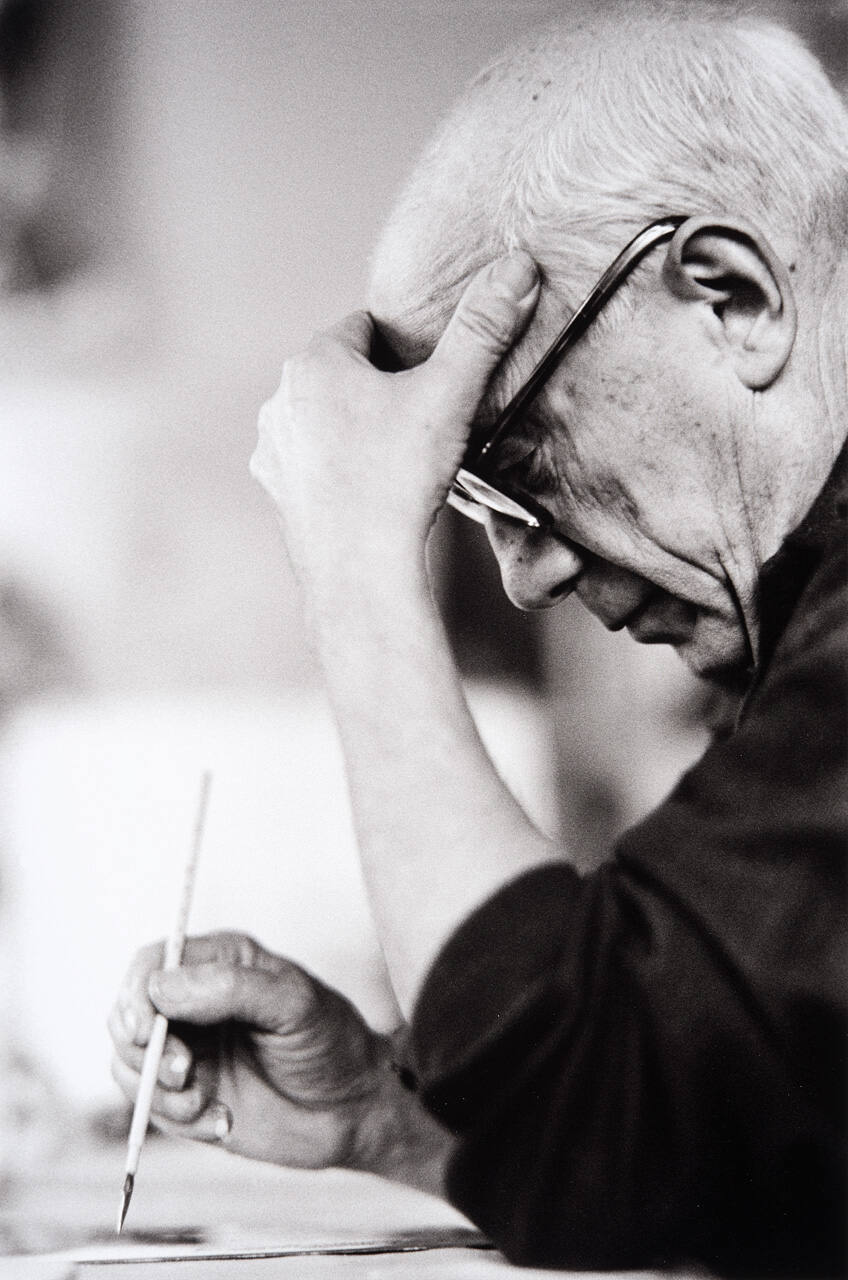 DescriptionProfile image of Picasso painting while resting head on hand.Copyright© Harry Ransom Center, The University of Texas at Austin
