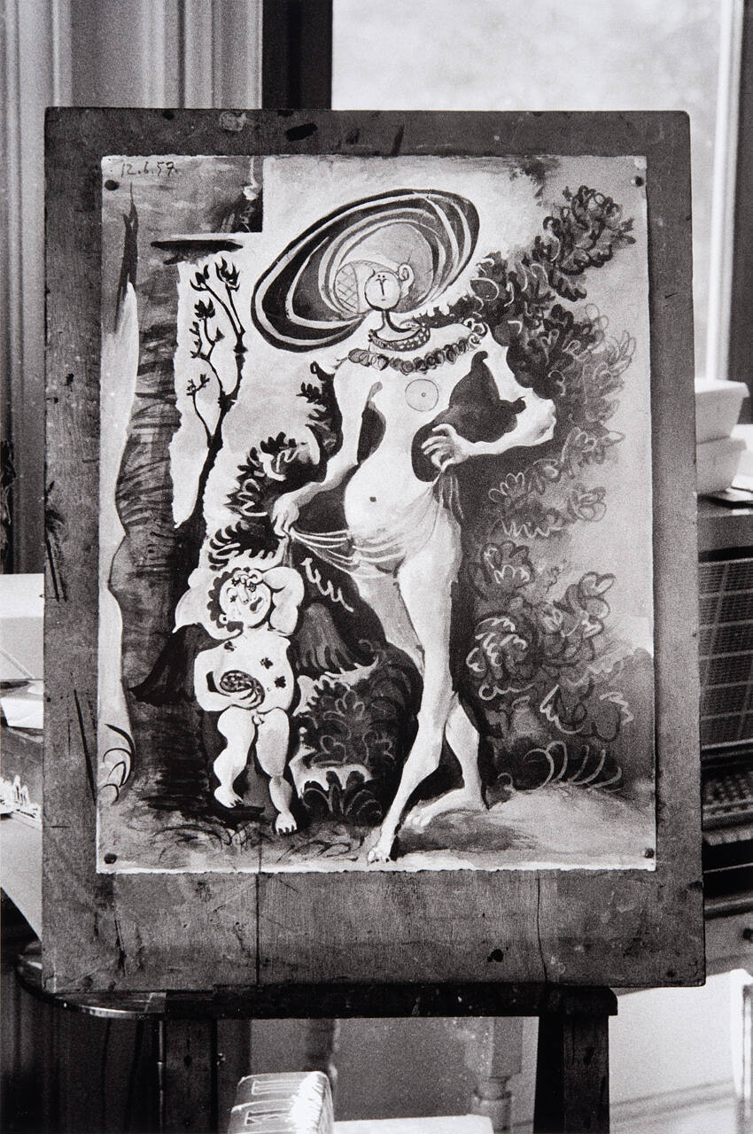 "Venus and Amour," gouache, by Picasso (June 12, '57), of famous painting of same title and subject by fifteenth-century German master Cranach