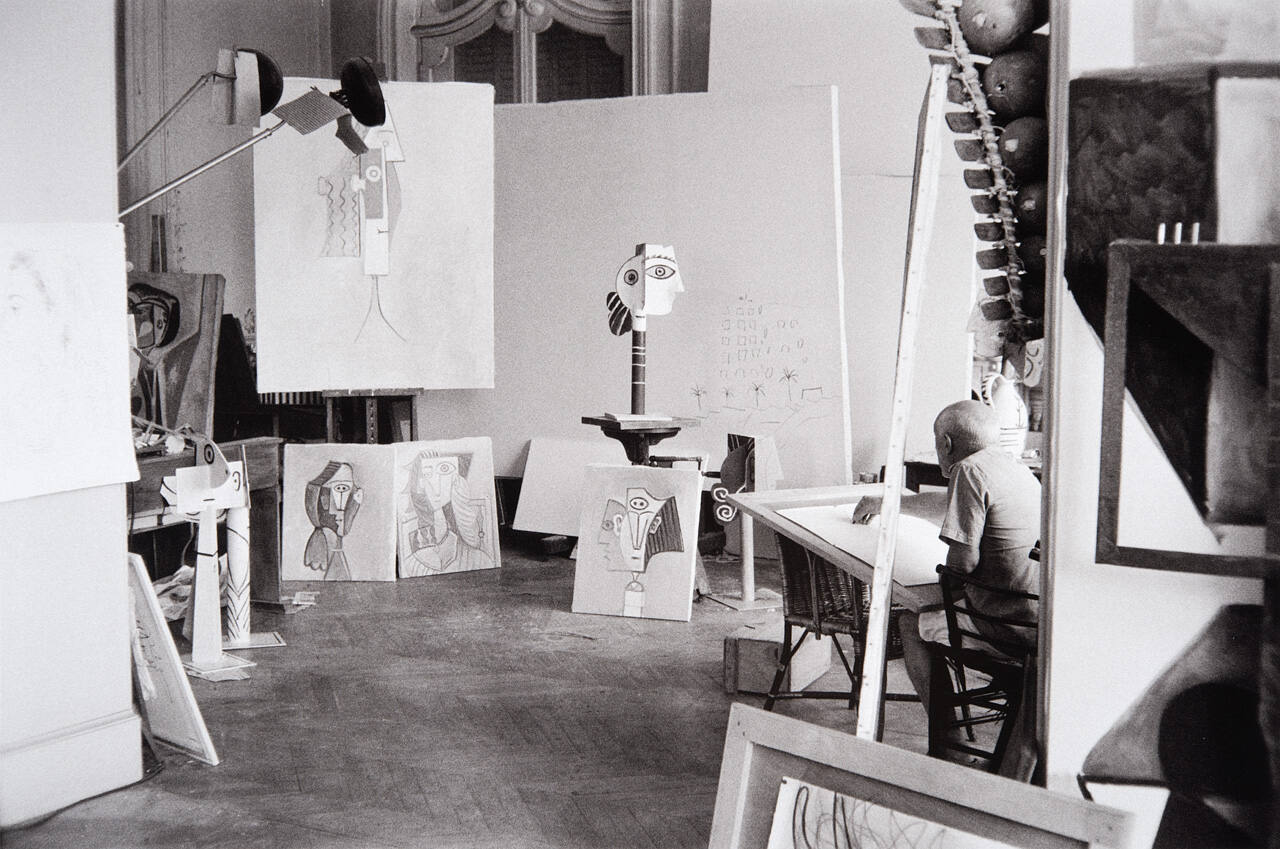 DescriptionImage of Picasso seated at table in studio.Copyright© Harry Ransom Center, The University of Texas at Austin