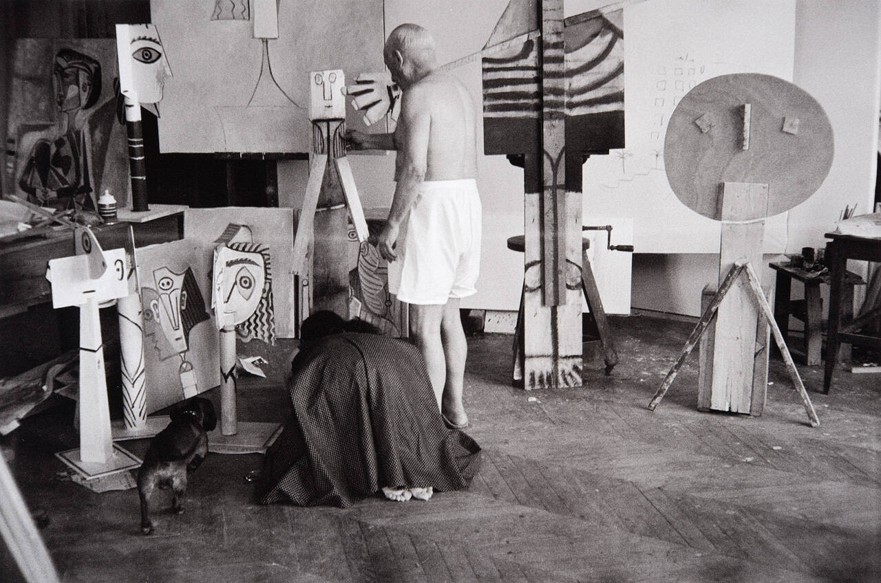 DescriptionImage of Picasso in his studio with dog nearby.Copyright© Harry Ransom Center, The University of Texas at Austin