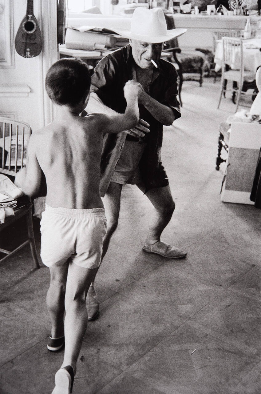 DescriptionImage of Picasso wearing cowboy hat while pretending to box with young boy.Copyright© Harry Ransom Center, The University of Texas at Austin