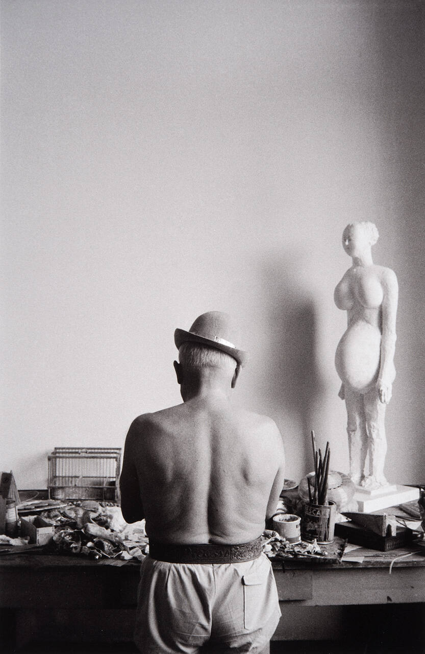 DescriptionImage of Picasso wearing bowler hat, shorts, and belt.Copyright© Harry Ransom Center, The University of Texas at Austin