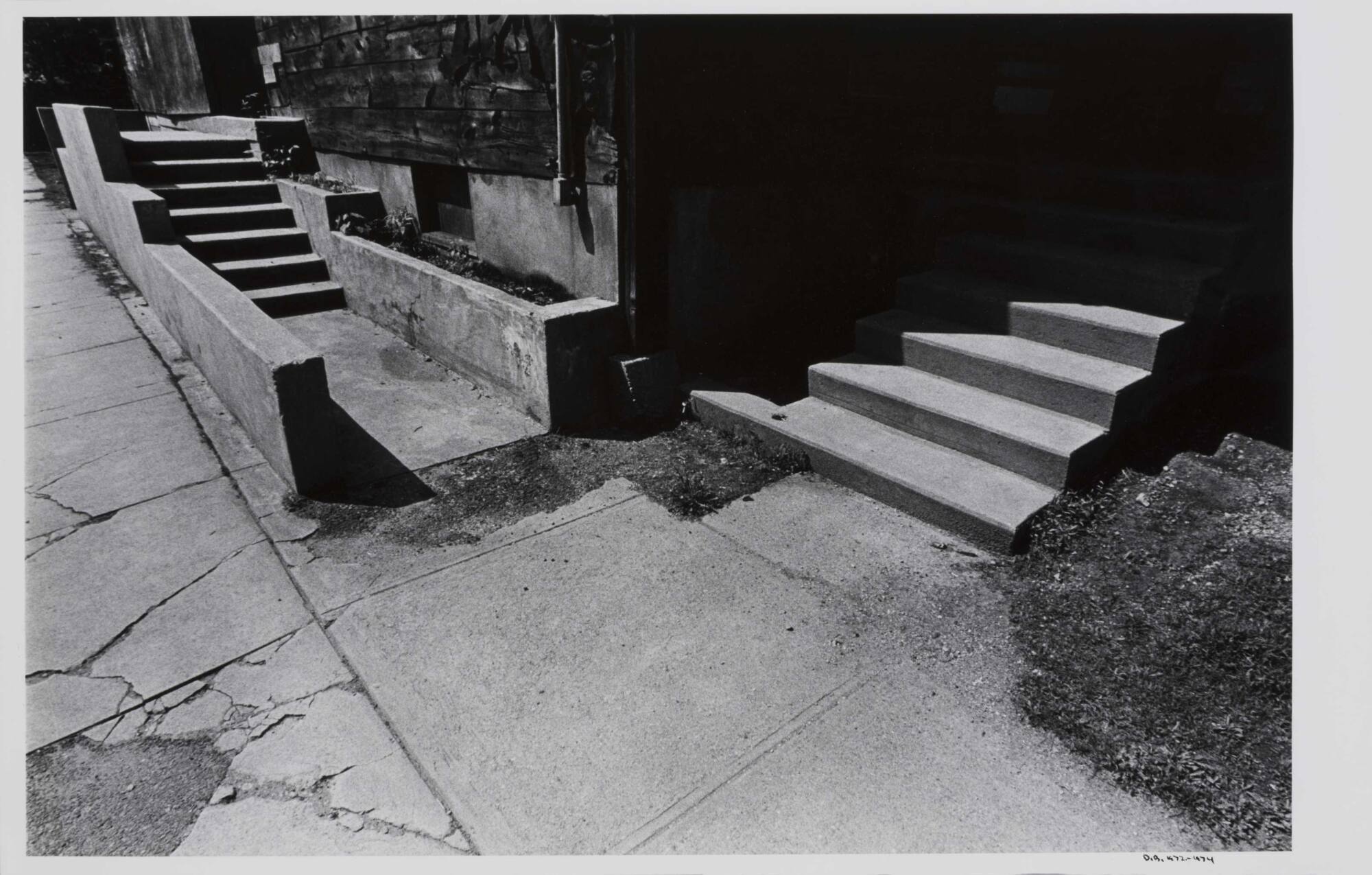 DescriptionImage of two sets of concrete stairs beside a cracked sidewalk.Copyright© Donald Blumberg