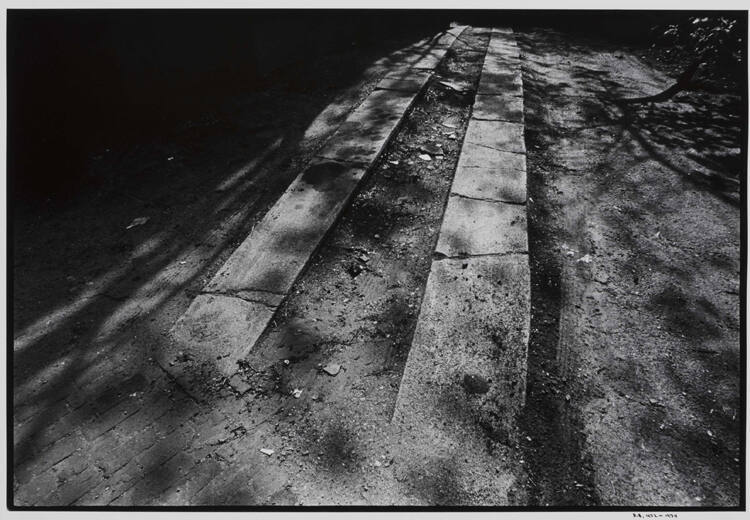 DescriptionImage of a brick and cement driveway surrounded by dirt.Copyright© Donald Blumberg