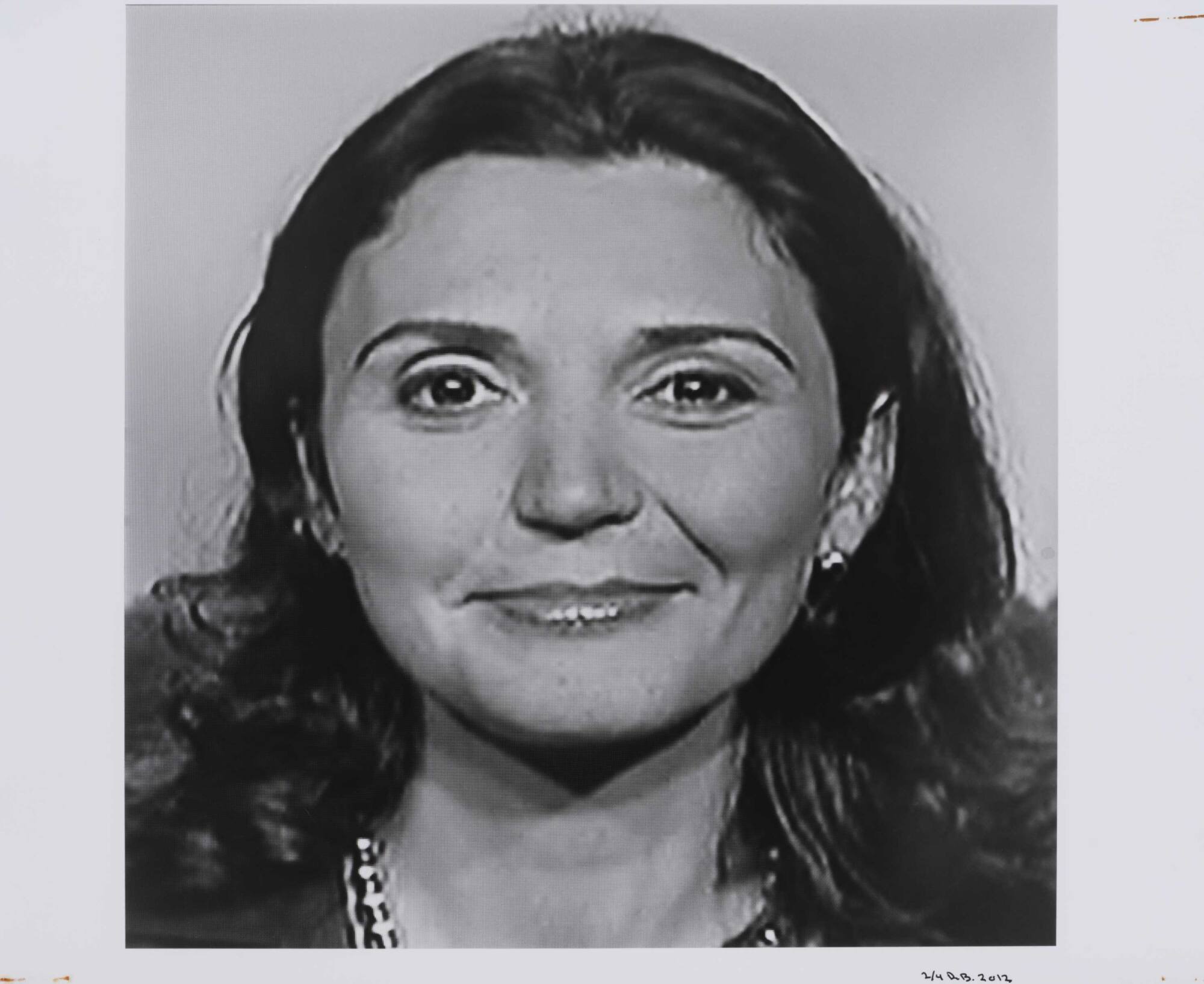 DescriptionClosely cropped portrait from a television screen of a woman with dark, wavy hair and slight smile.Copyright© Donald Blumberg