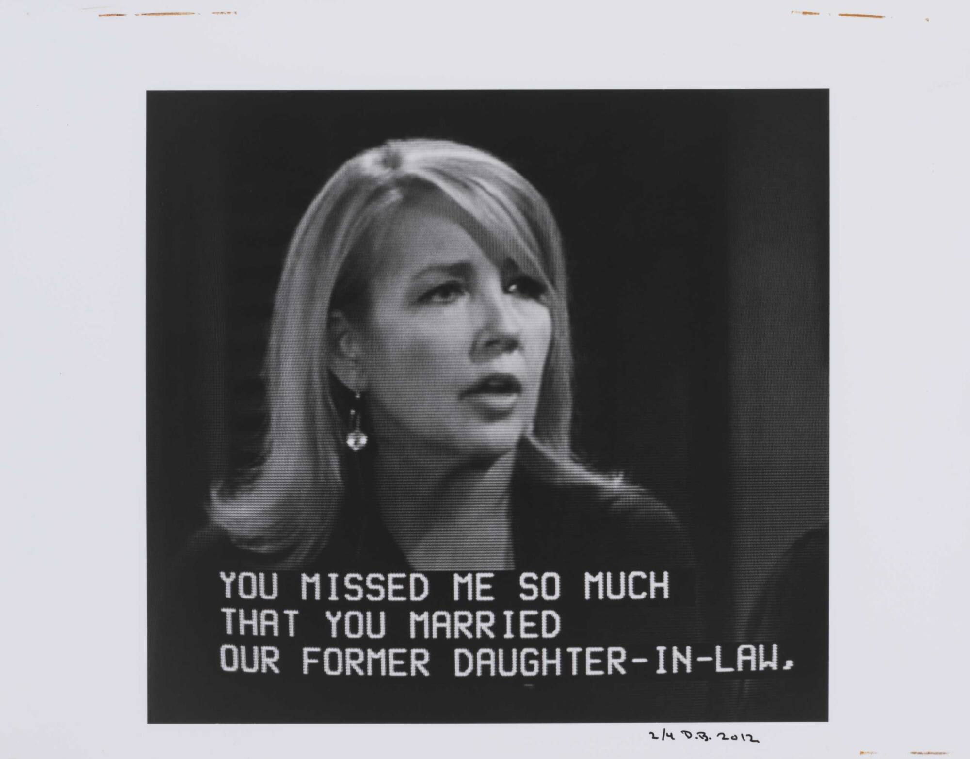 DescriptionPixelated image from a television screen of a woman with shoulder length hair and mouth agape along with subtitles "YOU MISSED ME SO MUCH THAT YOU MARRIED OUR FORMER DAUGHTER-IN-LAW."Copyright© Donald Blumberg