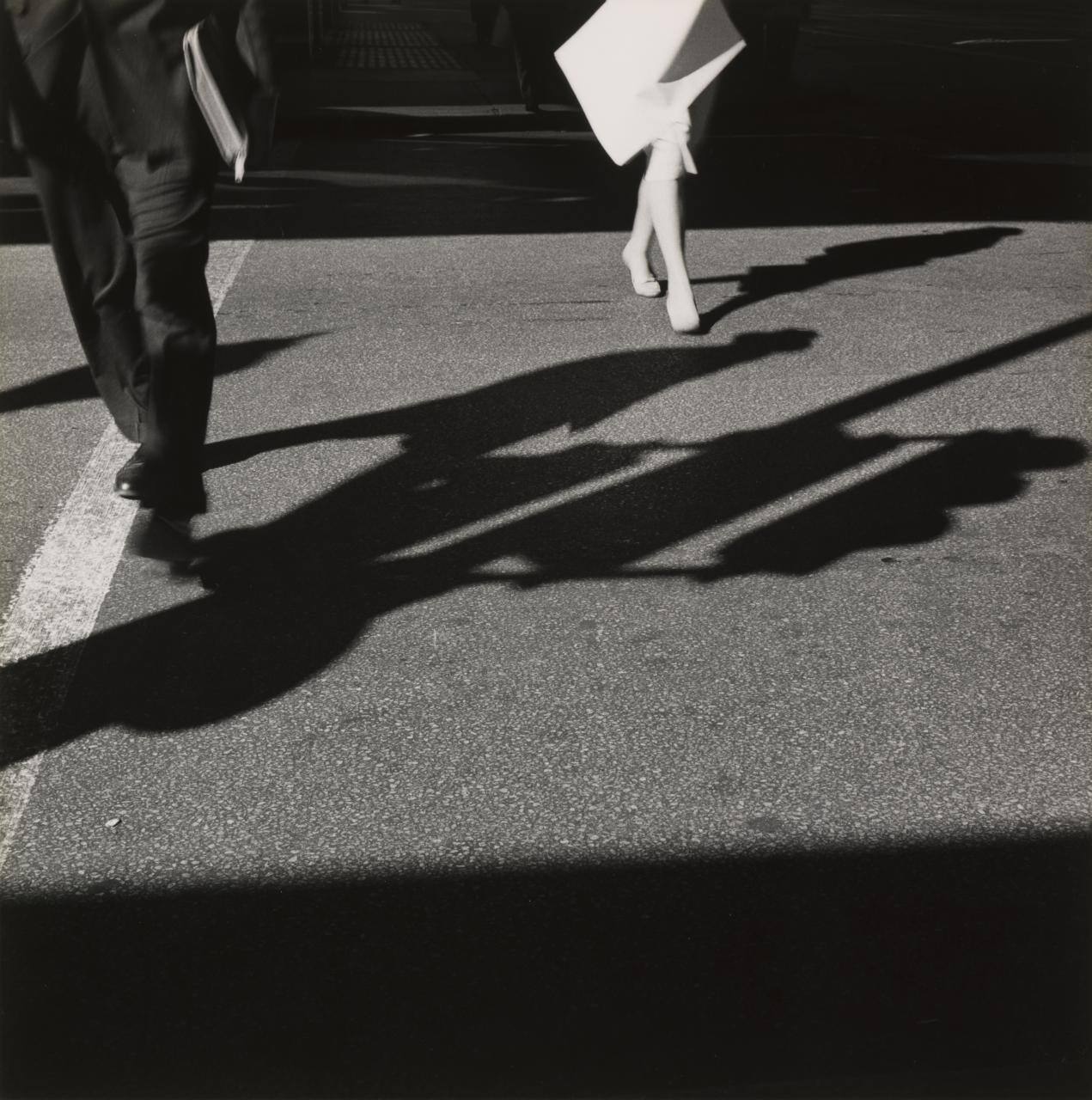 DescriptionImage of man's legs and woman's legs crossing the street with harsh shadows.Exhibition HistoryRotation 23. The Nelson-Atkins Museum of Art, Kansas City, MO, January 18 – May 28, 2017, no cat.