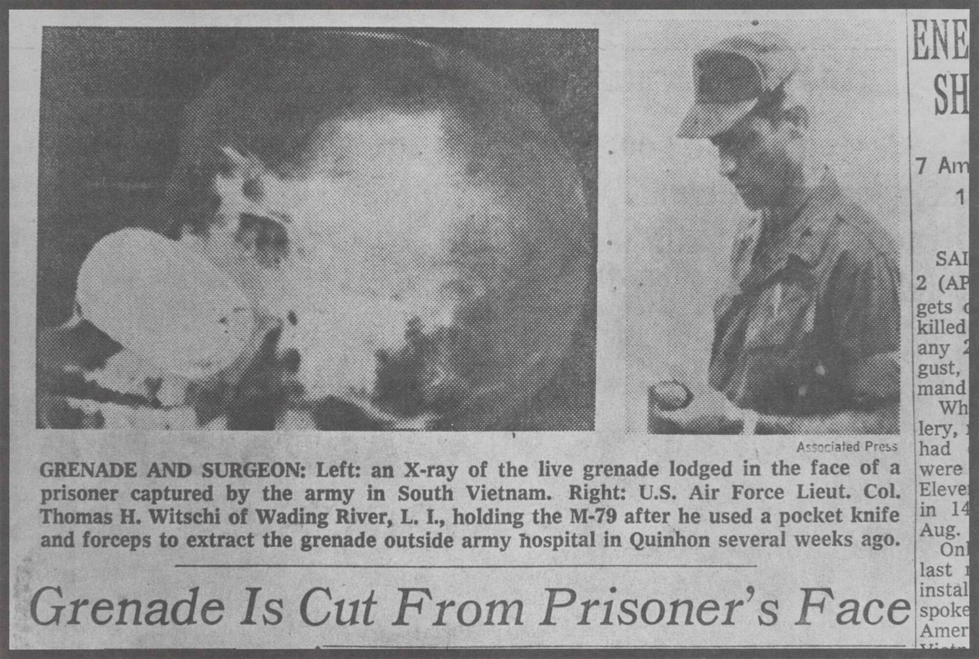 Grenade is cut from prisoner's face