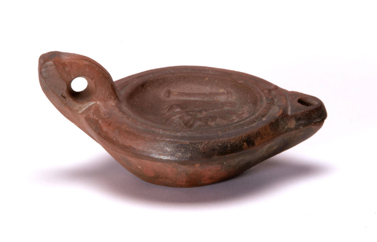 [1] The Nelson-Atkins and the Pacific School of Religion co-sponsored an archaeological expedition at Tell en-Nasbeh, northwest of Jerusalem, in 1932. The expedition was led by Dr. William Frederic Badé. The partage agreement between the institutions specified that if the artistic quality of the found objects was not satisfactory to the Nelson-Atkins, the Pacific School of Religion would transfer objects from its own collection to the Nelson-Atkins to supplement the more recent finds. This object is one of a group seven lamps transferred from the Pacific School of Religion to the Nelson-Atkins as a result of this agreement. William Frederic Badè wrote in a letter to J. C. Nichols, Nelson-Atkins Trustee, July 1, 1933, NAMA Registration Files: “We have included, from our earlier acquisitions, a series of Hellenistic picture lamps from various sites in Lower Egypt. They represent the height of artistic lamp production during the period when Greek art and literature were at their height in Egypt, with Alexandria at the centre.” An inventory list in the NAMA Registration files identifies this piece as from Bubastis, Egypt.