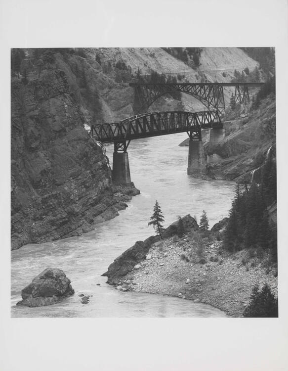 InscribedTitled on sheet verso, center, in pencil: "Canadian Pacific Railway Bridge (foreground) / Canadian National Railways bridge (background) / Fraser River / Siska Creek, British Columbia:'