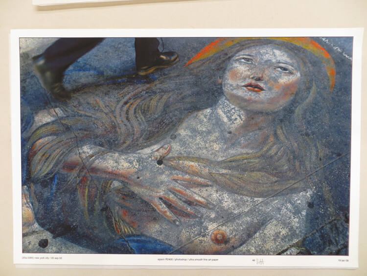 DescriptionImage of chalk drawing on sidewalk depicting woman with long hair, halo, and hand on bare chest.ProvenancePurchased from Michael Schreier, Ottawa, Ontario, Canada by the Hall Family Foundation, Kansas City, MO, 2014;