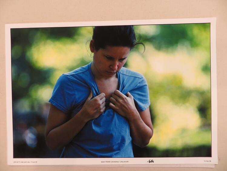 DescriptionImage of woman with dark hair looking down while pulling on the collar of her t-shirt.ProvenancePurchased from Michael Schreier, Ottawa, Ontario, Canada by the Hall Family Foundation, Kansas City, MO, 2014;