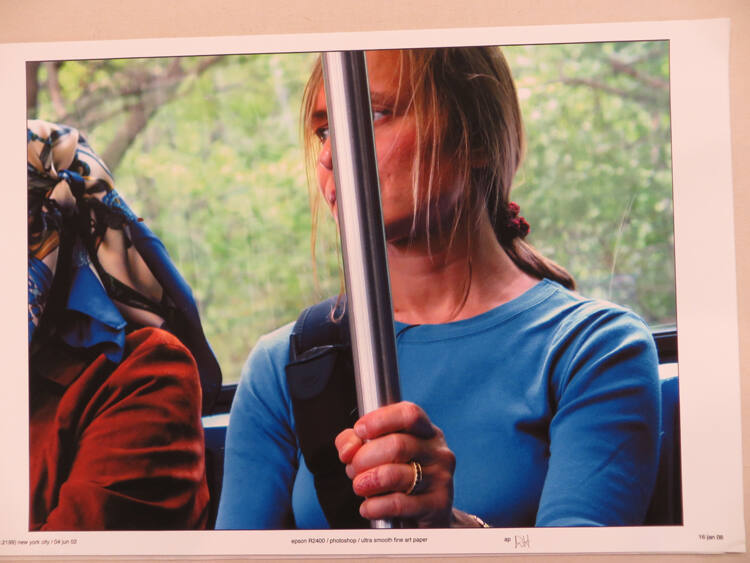 DescriptionImage of woman wearing blue shirt seated on bus with hand on pole.ProvenancePurchased from Michael Schreier, Ottawa, Ontario, Canada by the Hall Family Foundation, Kansas City, MO, 2014;