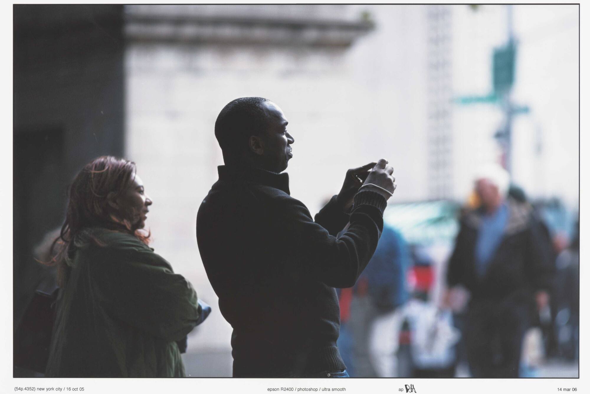 InscribedPrinted on sheet recto, lower left, in black: "{54p.4352} new york city / 16 oct 05";