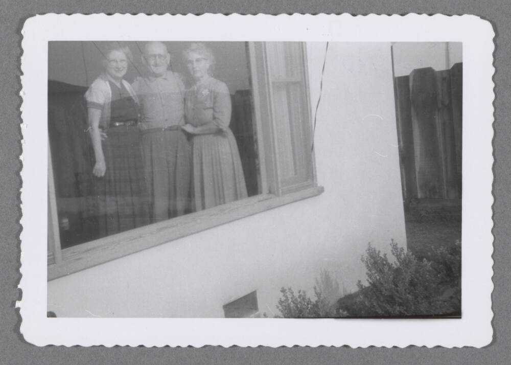 Three elderly people through front window