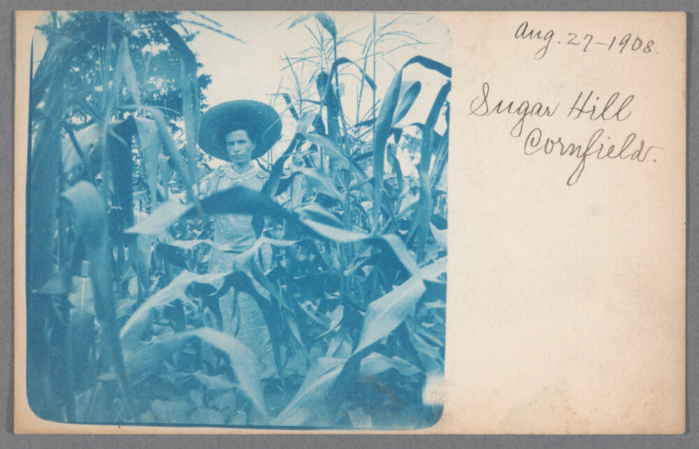 InscribedOn sheet recto, upper right, in brown pen: "Aug. 27 - 1908 / Sugar Hill / Cornfield."