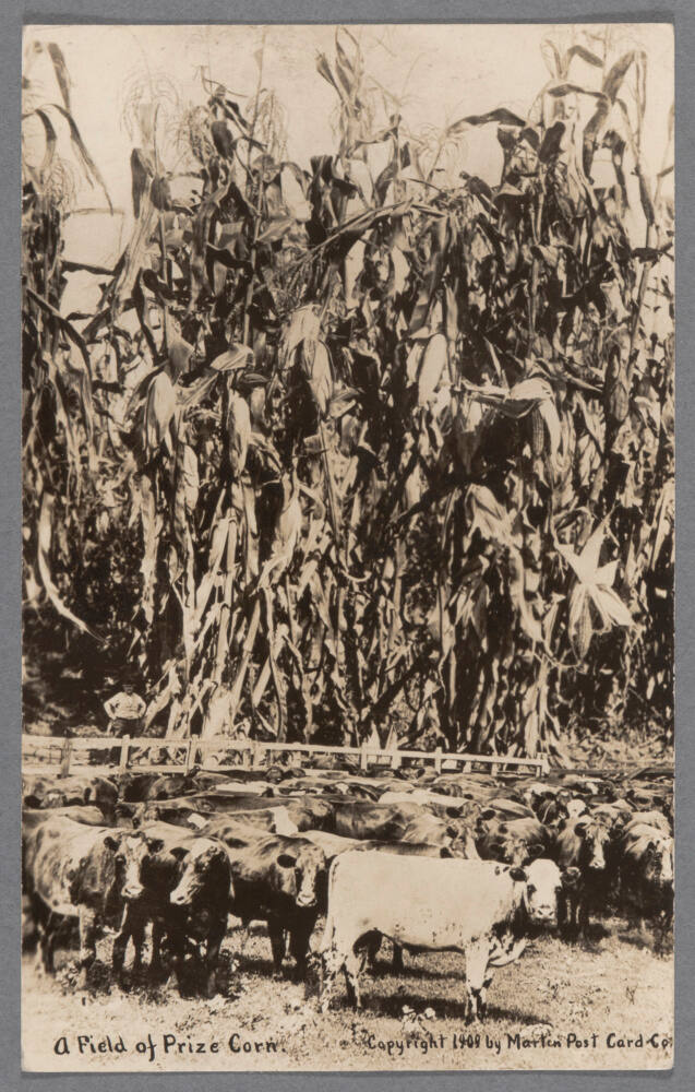 InscribedOn sheet recto, bottom center, in black pen: "A Field of Prize Corn. / Copyright 1909 by Marten Post Card Co."