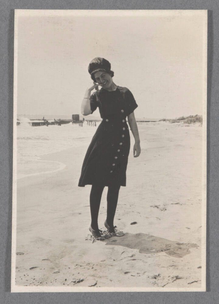 DescriptionImage of woman wearing dress and standing on the beach smiling.