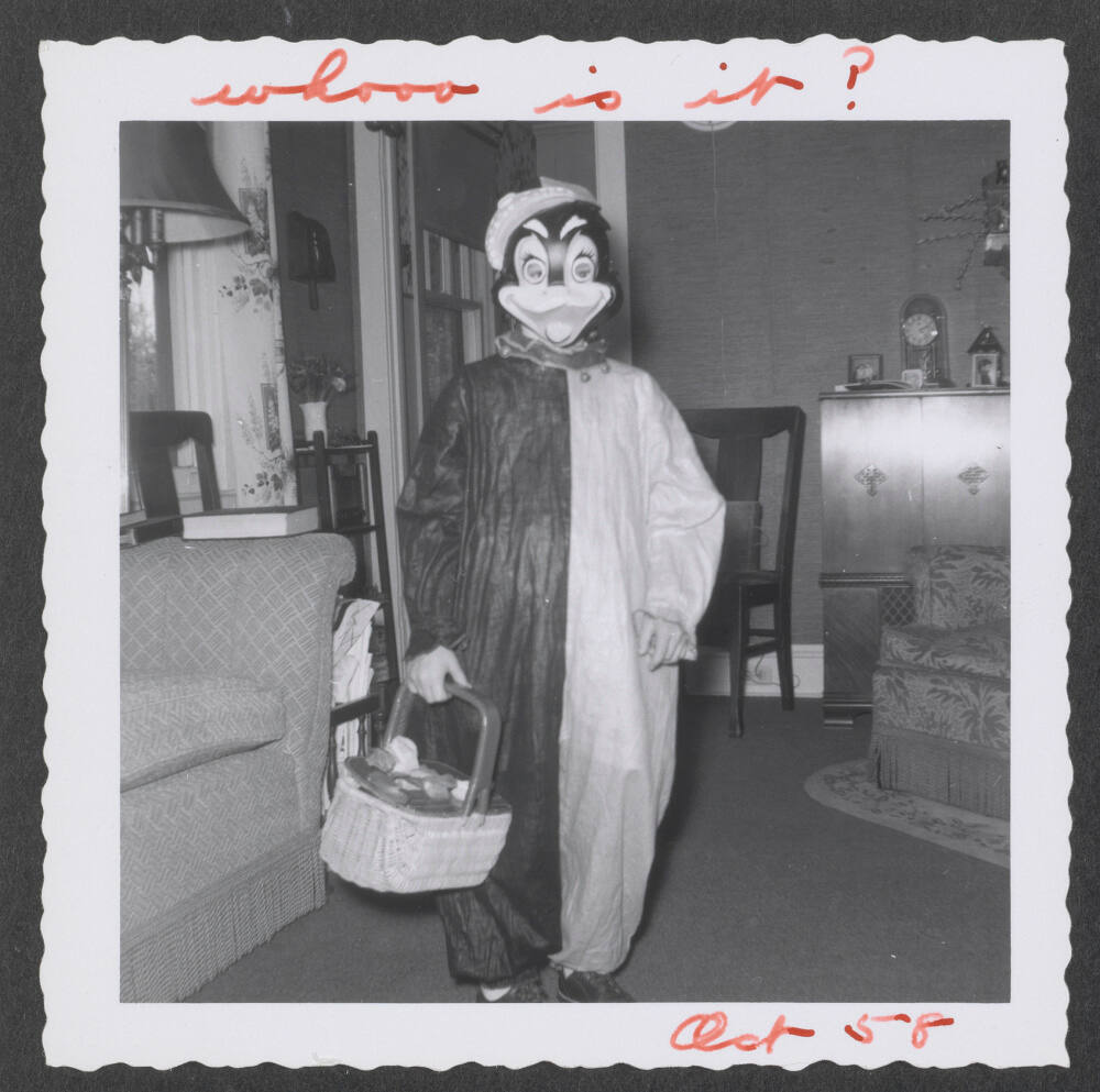 InscribedOn sheet recto, top center, in red pen: "Whooo is it?"; On sheet recto, lower right, in red pen: "Oct 58"